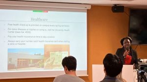 The final segment was the Fresher’s Meet & Greet, moderated by Director Nakao Nomura of the Office for International Exchange Support. Representatives from the Union of Tsukuba International Associations (UTIA) and the All Colleges Students’ Representative Council (ZENDAIKAI) gave greetings and activity reports. Additionally, the international exchange circle Omochi Language Club and current student gave welcome presentations for new students. The presentations included essential information for international students starting their new lives in Tsukuba, as well as insights into current student interests and thoughts on future careers.